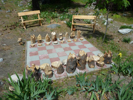 • Outdoor games: Maple vs.pine 8 ft square chess/checkers + horseshoes.